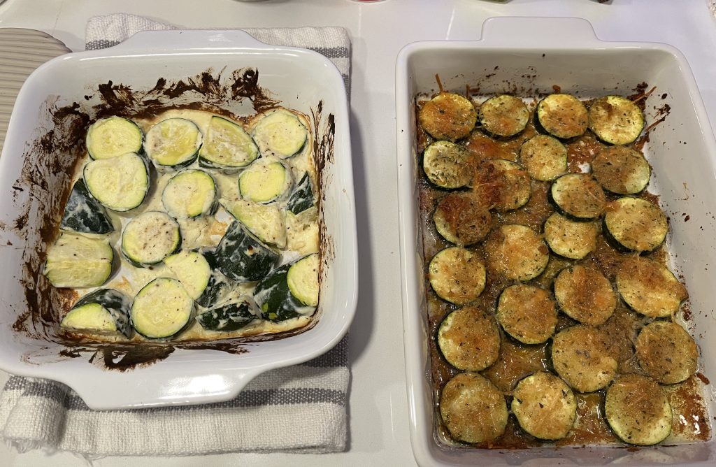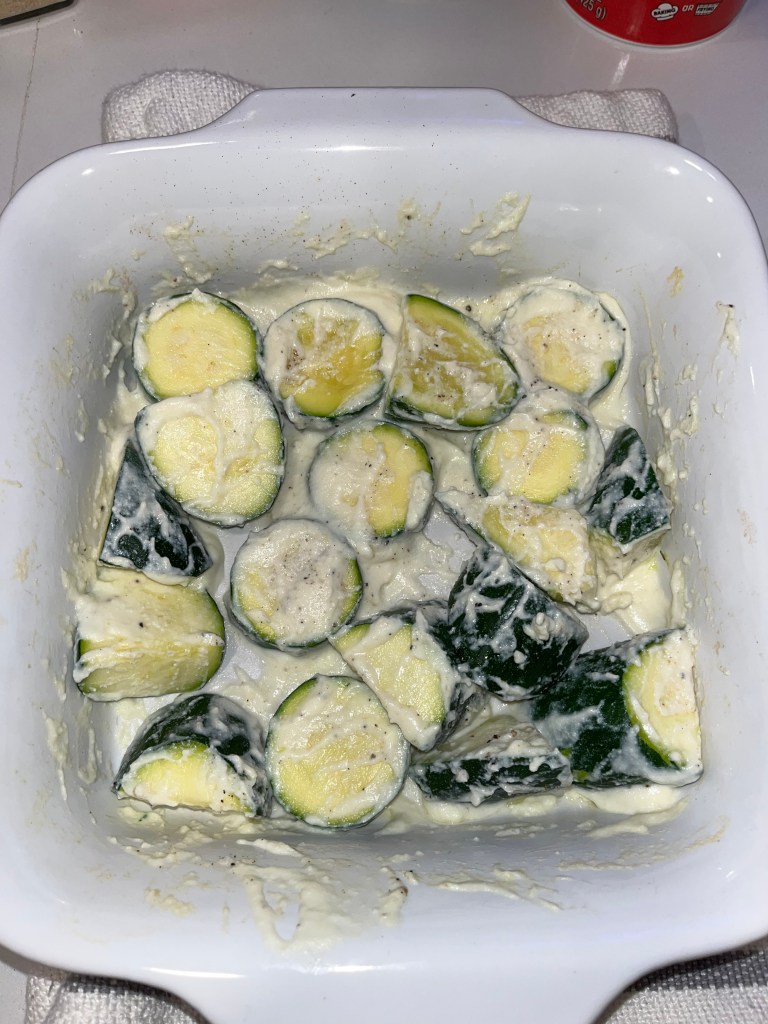 The pieces that were cut into larger pieces actually still had a crunch to them. I had added some round pieces to this dish because I realized just 1 zucchini wasn’t enough.